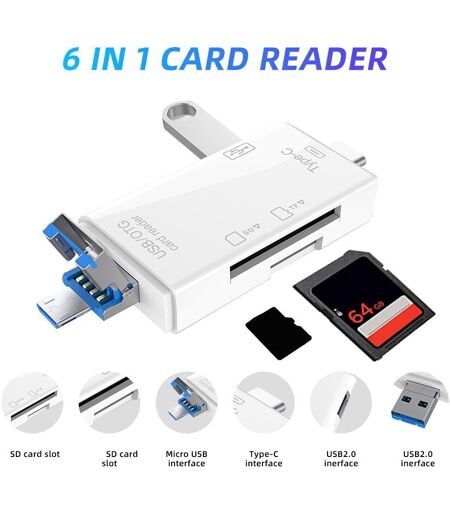 OTG-Lecteur de carte SD et TF de type C,6 en 1,USB 3.0,adaptateur de clé micro USB,5Gbps,lecteur de carte multifonctionnel haute vitesse - Type DKQ-White-6in1-ABS