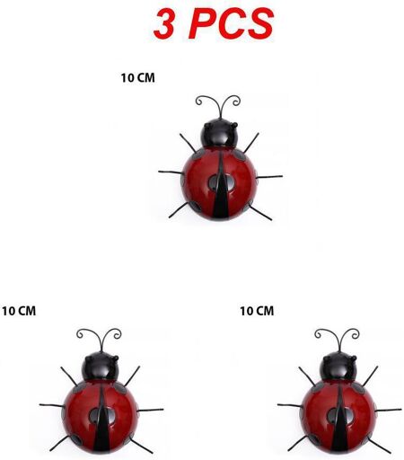 Décoration murale CÔTÉ cinelles en métal 3D,décoration de jardin créative,sculptures d'insectes mignons,clôture de pelouse extérieure intensifiée,fournitures de décora - Type 3Pcs 10cm Red-Decorate