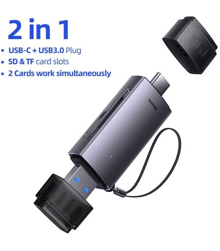 Lecteur de carte Baseus USB 3.0 Type C vers Micro SD TF lecteur de carte mémoire 2 en 1 pour ordinateur portable accessoires adaptateur de carte intelligente - Type 2 in 1