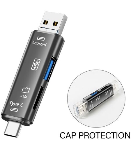Lecteur de carte multifonction USB 3.0 TYPE-C 6 en 1,stockage externe noir commandé pour Memory Stick Mini lecteur de carte mémoire - Type B 1