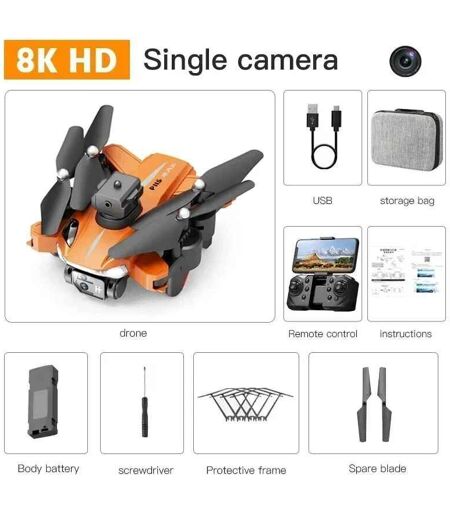 Drone P11s Pro Max Avec Caméra Hd 8k,Gps,Quadricoptère Pliable,Jouets Intelligents À Quatre Voies,Évitement D'obstacles,Rc,Cadeaux Professionnels,5000m - Type Orange Single8k 1b #C-Generique