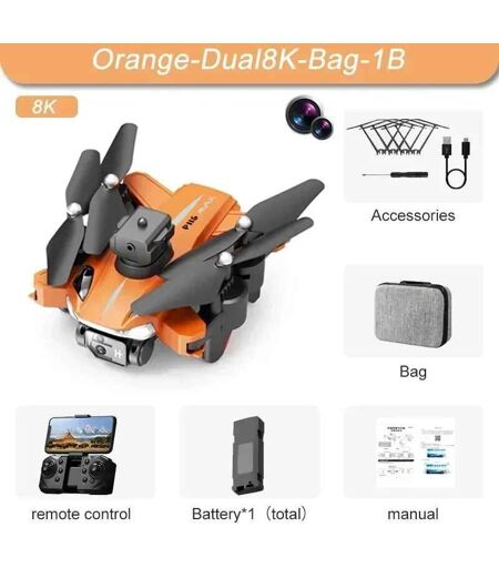 Drone P11s Pro Max Avec Caméra Hd 8k,Gps,Quadricoptère Pliable,Jouets Intelligents À Quatre Voies,Évitement D'obstacles,Rc,Cadeaux Professionnels,5000m - Type Orange Dual8k 1b #C-Generique