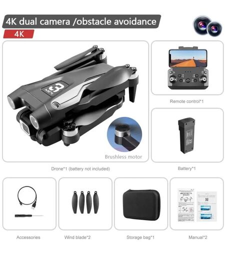 Drone Z908 Promax Avec Moteur Sans Balais,Évitement D'obstacles,4k,Lentille Touriste,Esc,Wifi Professionnel,Fpv,4 Axes,Pliable,Rc Quadcopter,Jouet + Boîte - Type Black Dual-4k-1b-Generique