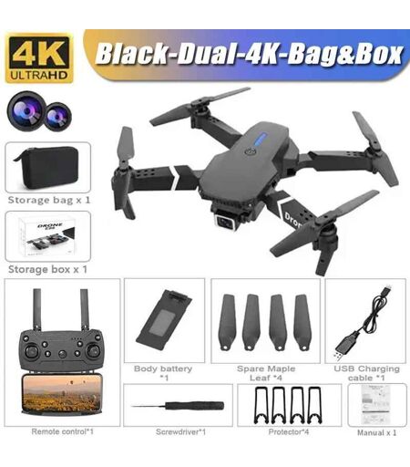 Drone Professionnel Avec Caméra Hd Grand Angle Pour Touristes,Hélicoptère Rc Pliable,Wifi Fpv,E88pro,4k,1080p,Recommandé De Tenir Un Tablier,Cadeau De Vente - Type B-Dual-4k-Bag-Box #B-Generique