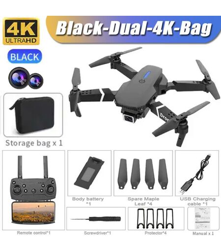 Drone Professionnel Avec Caméra Hd Grand Angle Pour Touristes,Hélicoptère Rc Pliable,Wifi Fpv,E88pro,4k,1080p,Recommandé De Tenir Un Tablier,Cadeau De Vente - Type Black-Dual-4k-Bag #O-Generique