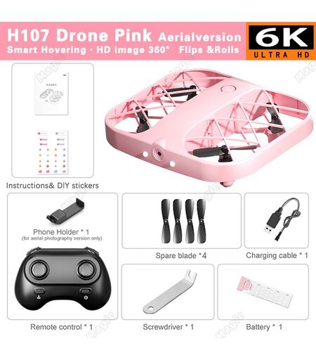 Jjrc-Mini Importateur Quadricoptère À Grille Hknit,Caméra Hd 8k,Transmission En Temps Réel,Mini Ovni De Poche,Petit Avion Télécommandé,Jouets Pour Garçons - Type Pink Camera 6k