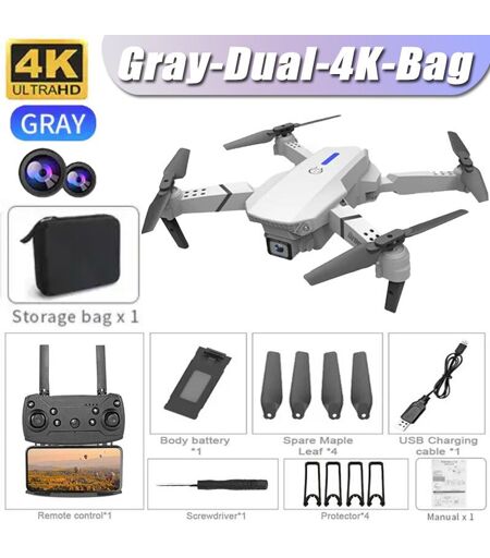 Drone Pliable Avec Caméra Hd Grand Angle Pour Touristes,Hélicoptère Rc,4k,Professionnel,Wifi,Fpv,Recommandé De Tenir Un Tablier,E88pro,1080p - Type Gray-Dual-4k-Bag #O-Generique