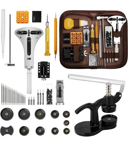SERBIA 149 Kit de réparation de montres + presse de boîtier, kit d'outils de barre à ressort professionnel, outils de montre pour fermer les montres de fond