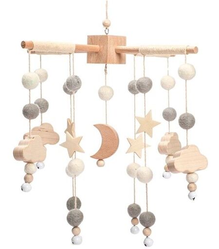 Hochet Jouet Bébé 0-12 Mois Mobile En Bois Sur Le Lit Boîte À Musique Lit Cloche Suspendus Jouets Support Bébé Berceau Garçon Jouets - Type Gray Moon