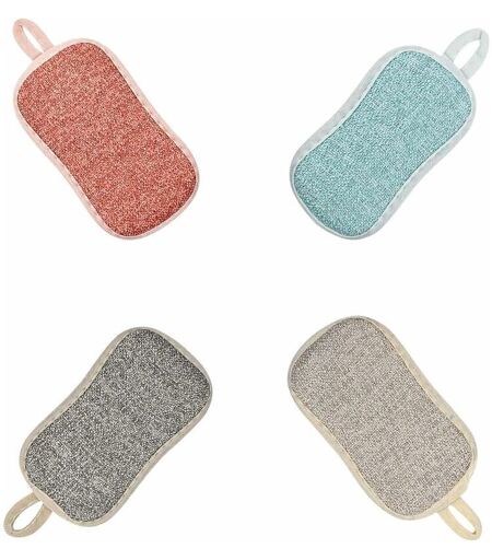 Fontainebleau - Paquet de 4 éponges à Vaisselle,Microfibre Tampons à Récurer éponge,Double éponge pour Les Poêlons Antiadhésifs,Reutilisable éponge
