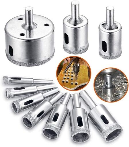 Forets en diamant de haute qualité avec une surface plus économique et rapidement coupée - fabriquée à partir d'acier au carbone à nickel haute résistance, ces exercices sont durables et précis dans l'augmentation de la vitesse de forage et plus nette que les autres sciages normaux. 10 pièces Taille principalement utilisée - contient le diamètre suivant: 8 mm, 10 mm, 12 mm, 14 mm, 16 mm, 18 mm, 20 mm, 22 mm, 25 mm, 50 mm; Avec le marquage laser, la taille répondra à la plupart de vos différents besoins. Application - Convient pour une utilisation dans un forage sur le verre, le marbre, les carreaux, les verres, la fibre de verre, la porcelaine et les carreaux de céramique, le BLVA0299 en ardoise, le granit de pierre légers, etc. Il fonctionne avec toutes les machines à forage électrique et les machines à forage d'impact. Beau design - Le milieu des trous et les trous latéraux aident à éliminer facilement les déchets; et la surface plaquée au nickel, prolonger la durée de vie, ...