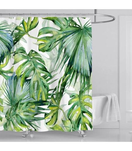 Linghhang - Rideau de douche anti-moisissure 120 x 180 cm, motif feuille de palmier verte, tissu résistant à l'eau, style tropical jungle botanique