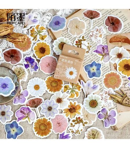 Ensemble D'Autocollants Fleurs Fraîches,45 Pièces/Paquet,Décoration Mignonne,Scrapbook,Pour Journal D'Enfant,Bricolage,Artisanat D'Art,Album,Journal Indésirable.As Photo.