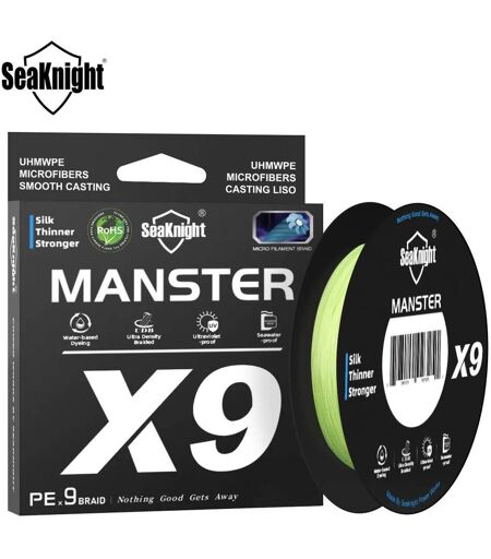 Specifications; Chimique Hign-concerné:Aucun; Mètres:300M 500M; Numéro de Modèle:Braided Line X9 Series; Caractéristique de flottabilité:Ligne flottante; Forme:Niveau; Avec Règle ou Non:Non; Avec Échelle ou Non:Non; Position:Rivière,Étang réservoir,Pêche sur la plage de l'océan,LAKE,Pêche en bateau,stream,Pêche dans les rochers de l'océan; Matériau:Fil tressé; 9 Weaves:9 Strands; Low-Vis Color:Low-Vis Green; Low-Vis Gray; Hi-Vis Color:Hi-Vis Yellow; Multi-Color:one color ten meters; Seawater-proof coating:suitable for Seawater fishing; Ultraviolet-proof coating:improved colorfastness; patents:Water based dyeing technology; braided technology:Ultra density braided; 2024 NEW 9 Strands PE Fishing Line; SeaKnight Brand X9 Fishing Line 500M 300M 150M Thin and Strong 9 Strands PE Braided Line Water based dyeing technology Saltwater; Product Detail; Brand: SeaKnight Model: X9 Series Meters: 150M 300M 500M Shape: Level Material: Braided Wire Buoyancy: Floating 4 Colors: Low-Vis Green, Hi-Vis Yellow, ,Multi-Color,Low-Vis Gray Line Number: 0.8; 1.0; 2.0; 3.0; 4.0; 5.0; 6.0; Parameters:; Line Number 0.8#: 0.14mm / 17LB / 7.7KG Line Number 1.0#: 0.16mm / 22LB / 10KG Line Number 2.0#: 0.23mm / 33LB / 15KG Line Number 3.0#: 0.28mm / 45LB / 20.4KG Line Number 4.0#: 0.32mm / 50LB / 22.7KG Line Number 5.0#: 0.37mm / 65LB / 29.5KG Line Number 6.0#: 0.40mm / 80LB / 36.3KG; Note:; Line number is not diameter, not strength in LB, please check the size chart carefully before payment, and please leave us message if anything confused, thanks!; Package List:; 1pc * Fishing Line Box packaging; SeaKnight Fishing Line Series - new upgrade!; 1.Water based dyeing technology 2.Ultraviolet-proof coating 3.Seawater-proof coating 4.Ultra density braided; Ultra Density Braided & Two-layer Coating; 1. Advanced wide-angle technology to achieve Ultra Density Braided 2. 9 Strands & Two-layer Coating: Ultraviolet-proof coating + Seawater-proof coating adding silicone resin; RoHS - Environment Friendly; Water based dyeing technology (Exclusive Patents), more environment friendly; Ultraviolet-proof coating; improved colorfastness; Seawater-proof coating; suitable for freshwater & saltwater fishing; Updated Silicon Resin Coating; Updated silicon resin coating improves heat dissipation and wear resistance.; Drag Power Test; Extremely high strength per diameter Drag Power: 17-80LB X9 80lb with 9 strands of 150 denier PE line , actual lab test breaks at 95 lbs.; Diameter Test; Amazing thin and sensitive high pick Diameter: 0.14-0.50mm; Color Show; Note The X9 same length use same size bobbins. The thiner in diameter, the smaller in size,the bobbins will looks more "" empty"" in vision. But it do not means any less in length, they are 150m/300m and 500m defenitely.; PHOTO SHOW; FAQ; X9 SERIES Question 1 :is this line environment friendly? Answer: Of course,this series used Water Based Dyeing Technology,more environment friendly. Question 2 :Is the strength same as the size chart? Answer: Of... ...