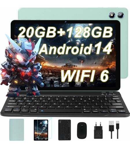 Nouveau système Android 14 + processeur octa-coreLe dernier système d'exploitation Android 14 est équipé d'un processeur à 8 c?urs de 1,8 GHz, ce qui améliore la stabilité du fonctionnement et la sécurité des données privées des utilisateurs. Il prend en charge le multitâche, ce qui permet de passer d'une application à l'autre en douceur et d'améliorer l'efficacité. Enfin, il répond mieux aux besoins personnalisés et diversifiés des utilisateurs de la nouvelle ère.20 Go de RAM + 128 Go de ROM + 1 To extensibleLa combinaison de 6 Go de RAM et de 14 Go de RAM vous permet de passer sans effort d'une application à l'autre et de profiter des jeux sans délai. Extensible jusqu'à 1 To, stockez commodément vos livres électroniques, vidéos, applications et autres préférés.Écran HD de 10,1 pouces + deux haut-parleursL'écran HD de 10,1 pouces garantit une excellente qualité d'image et un grand confort de visionnage. Il prend également en charge la norme Widevine L1, ce qui vous permet de regarder des vidéos HD 1080p partout et à tout moment, et de profiter d'une version familiale des films grâce aux deux haut-parleurs intégrés.WiFi 6 et Bluetooth 5.0 Il prend en charge les bandes Wi-Fi 2,4 GHz et 5 GHz, offrant des vitesses de transmission plus rapides et une bande passante réseau plus élevée pour garantir une expérience vidéo et de jeu fluide. Il est également équipé de la technologie Bluetooth 5.0 pour une plus grande couverture, des vitesses de transmission plus rapides et une meilleure compatibilité. Profitez d'une naviion Internet fluide à tout moment.6000mAh et double appareil photo 5MP+8MPAvec sa grande autonomie, sa haute capacité de 6000 mAh, vous pouvez l'util r pendant longtemps, que vous travailliez, étudiiez ou vous divertissiez. La caméra frontale de 5 MP vous permet de passer et de recevoir des appels vidéo, et l'appareil photo arrière de 8 MP immortal tous les moments merveilleux de votre vie.2 et 1 TabletteLa tablette est fournie avec une souris, un clavier Bluetooth, un étui de protection, un chargeur, un protecteur d'écran, etc..La livraison depuis la France est prévue dans 5 jours ouvrés, n'hésitez pas à passer votre commande ...