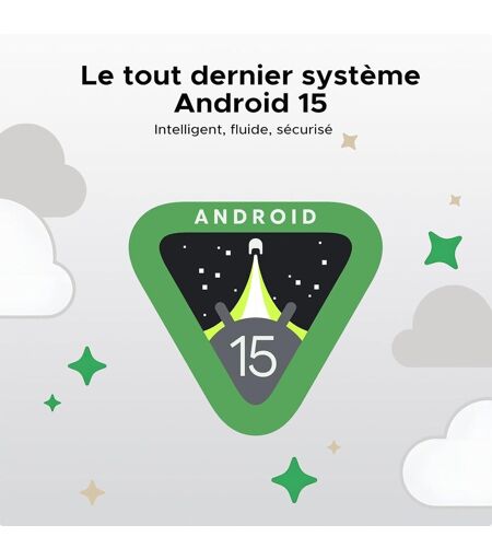 2025 Dernière DOOGEE Tablette 10 PoucesFonctionnant sous le dernier système Android 15, cette DOOGEE Tab A9 tablette 10 pouces offre des améliorations significatives par rapport à Android 14. En termes de performances, Android 15 offre une augmentation de 20 % de la vitesse de lancement des applications et une amélioration de 15 % de la fluidité globale du système. En matière de confidentialité, la tablette Android 15 introduit un nouveau système de gestion des autorisations qui permet aux utilisateurs d'accorder des autorisations aux applications de manière plus préc , renforçant ainsi la sécurité des données.Unisoc T310 Dernier ProcesseurLa DOOGEE Tab A9 tablette tactile est équipée du dernier processeur quadric?ur Unisoc T310, la dernière puce basée sur l'architecture ARM DyQ. Elle dispose d'un puissant c?ur Cortex-A75 à 2,0 GHz. Cette configuration unique offre une augmentation de 120 % des performances monoc?ur. Cela signifie que les tâches quotidiennes telles que l'utilisation de logiciels bureautiques et la naviion sur le Web sont un jeu d'enfant. De plus, le T310 est conçu pour une faible consommation d'énergie, ce qui se traduit par une production de chaleur réduite et une plus longue durée de vie de la batterie.Batterie 6580 mAh & 8MP+5MP double caméraCette tablette Android est équipée d'une batterie 6580 mAh qui garantit une longue autonomie grâce au système Android 15 efficace et au processeur T310 à faible consommation d'énergie. Cette tablette 10 pouces dispose d'une caméra frontale 5 MP et d'une caméra arrière 8 MP, capables de répondre à vos besoins quotidiens en matière de photographie et d'appels vidéo.12 Go RAM + 64 Go ROM + 2 To extensibleÉquipée de 12 Go de RAM, dont 3 Go de mémoire de base et 9 Go supplémentaires de mémoire extensible, cette tablette gaming fonctionne parfaitement avec le dernier système Android 15. Elle gère facilement le multitâche, offrant une expérience utilisateur fluide. La mémoire interne de 64 Go peut être étendue jusqu'à 2 To via une carte Micro SD, ce qui vous permet de stocker un grand nombre d'applications, de films, de musique et de fichiers sans vous soucier de manquer d'espace.Face ID & pr en charge OTG & pr jack 3,5 mmCette tablette Android 15 DOOGEE Tab A9 est équipée d'une technologie de reconnaissance faciale qui renforce la sécurité et permet un déverrouillage pratique et rapide. Elle prend également en charge la technologie OTG pour faciliter le transfert de données et dispose d'une pr jack 3,5 mm pour une expérience musicale agréable. Remarque le câble OTG n'est pas inclus..La livraison depuis la France est prévue dans 5 jours ouvrés, n'hésitez pas à passer votre commande ...