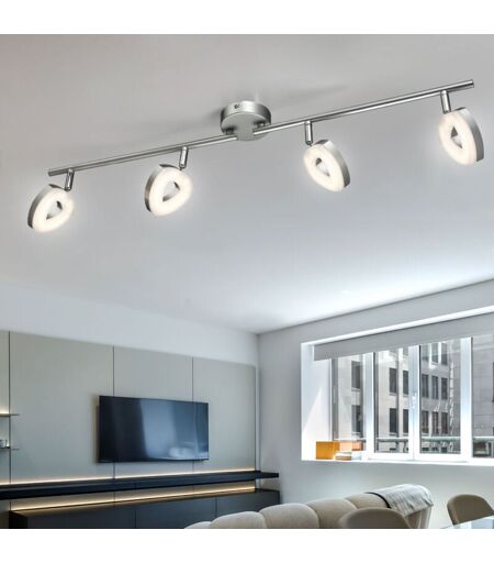 ESTO Spot bar 4 spots plafonnier orientable Plafonnier salon, métal, 4x 4,5W 350Lm blanc chaud, LxP 78x18 cm