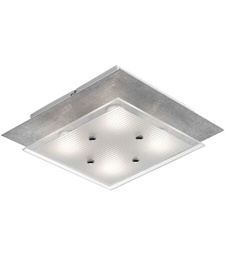 Description Plafonnier design en aluminium et verre. Le design classique permet à ce plafonnier de s'adapter de manière optimale à n'importe quel espace de vie imaginable et constitue donc le choix idéal pour presque toutes les installations. Le verre attaché à ce corps l'emporte par son éclat. Grâce aux quatre douilles LED, vous pouvez faire briller n'importe quelle pièce. Qu'il s'agisse d'un bureau, d'un salon ou d'une salle à manger, ce magnifique plafonnier s'intègre parfaitement dans votre espace de vie. Les ampoules LED sont installées en permanence dans la lampe. Lampes-Détails • Type de lampe : plafonnier • Matériau : aluminium brossé • Abat-jour : verre • Longueur x largeur x hauteur en cm : 27x27x8 • Poids : 1 650 g • Source lumineuse : 4 x LED • Ampoule incluse : oui • Illuminant-LED : 4 x 5 Watt LED • Couleur de la lumière : blanc chaud • Flux lumineux total LED : 1 400 lm (4 x 350 lumens) • Alimentation : 220 V à 240 V, 50 Hz à 60 Hz Détails ampoules • Type d'ampoule : ...