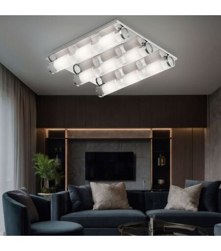 ESTO Plafonnier en verre satiné Plafonnier de salon Plafonnier chromé, aluminium, 9 LED 3W 300Lm blanc chaud, LxLxH 40x40x8 cm