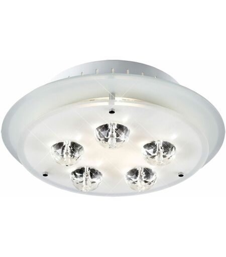 ESTO Lampe de plafond Lampe de salon Lampe de chambre à coucher Lampe de cristal, métal laqué blanc Cristaux clairs. d 33cm
