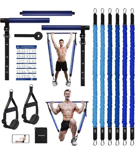 ¿Commodité du Home Gym¿ :Vous en avez assez de payer pour un abonnement coûteux à la salle de sport ? ALongSong Kit élastique musculation vous permet de vous entraîner confortablement à la maison. Le manuel comprend des routines d'entraînement illustrées et des méthodes pour accéder à des vidéos d'entraînement. Devenez votre propre instructeur de gym et obtenez un corps tonique chez vous. ¿Bandes de résistance en latex naturel de 50-360 LBS¿ : ALongSong bandes de résistance sont fabriquées en latex naturel durable provenant d'Asie du Sud-Est, offrant une fiabilité supérieure par rapport aux matériaux TPE traditionnels. Avec 3 paires (6 bandes) offrant des niveaux de résistance de 50, 60 et 70 Lbs, vous pouvez les combiner pour atteindre une résistance allant de 50 Lbs à 360 Lbs lorsqu'elles sont étirées à 3,5 fois leur longueur. La longueur est proportionnelle à la résistance. ¿Longueur réglable améliorée¿ : Pour accueillir des utilisateurs de différentes tailles, nous avons ajouté des sangles réglables avec des repères, adaptées pour les personnes de 170 à 190 cm. Vous pouvez ajuster la longueur des bandes de résistance de manière scientifique pour correspondre à votre taille. De plus, les poignées 2 en 1 disposent de boucles réglables pour s'adapter à différentes tailles de pieds. ¿Portable et peu encombrant¿ : La barre de Pilates en 3 sections est facile à assembler et à démonter, prenant un minimum de place à l'intérieur. Utilisez le sac de transport ALongSong pour l'emporter avec vous pour des entraînements en plein air. ¿Améliorez Votre Condition Physique avec ALongSong Elastique Musculation¿ : Renforcez votre tronc, améliorez votre posture, augmentez votre flexibilité, accroissez l'endurance musculaire et améliorez la coordination et la stabilité. La barre de Pilates ALongSong offre une large gamme d'exercices pour cibler différents groupes musculaires et répondre à divers besoins de remise en forme. ...