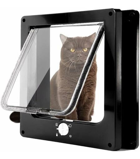 MACARON Chatière pour Chat, Chatière Magnétique à 4 Voies pour Chats et Petit Chiens, Porte pour Animaux Coulissant Manuel(Noir,L)
