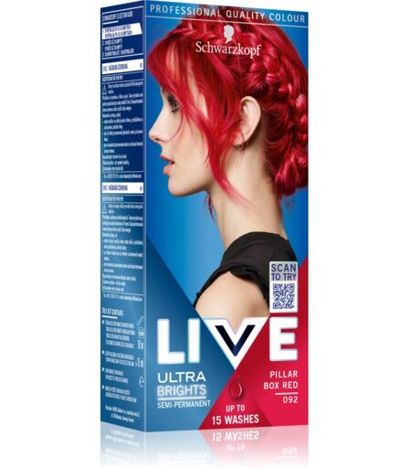 Schwarzkopf LIVE Ultra Brights or Pastel coloration semi-permanente pour cheveux teinte 092 Pillar Box Red 1 pcs
