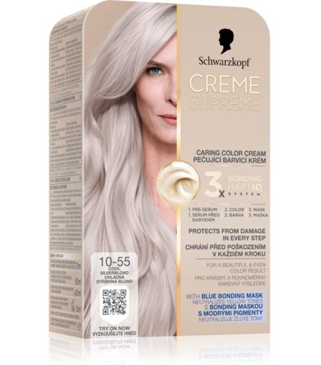 Schwarzkopf Creme Supreme coloration cheveux permanente teinte 10-55 Cool Silverblond 60 ml
