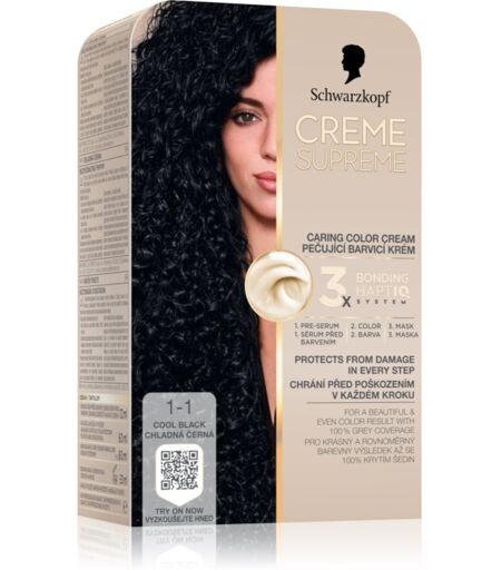 Schwarzkopf Creme Supreme coloration cheveux permanente teinte 1-1 Cool Black 60 ml