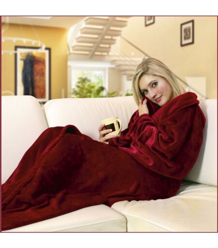 Walser Couverture câline en polaire avec manches rouge grenat 150x180cm