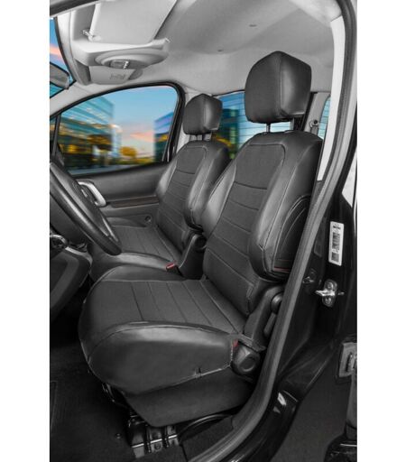 Les housses de siège sont conçues pour s'adapter parfaitement aux sièges avant de votre fourgon et sont prédécoupées pour le montage des appuie-tête. Le produit est fabriqué à partir d'une combinaison de matériaux de haute qualité en jacquard et en cuir synthétique. Celui-ci est très résistant et facile à nettoyer. Le siège auto d'origine est ainsi protégé de manière optimale contre les salissures et l'usure. ...