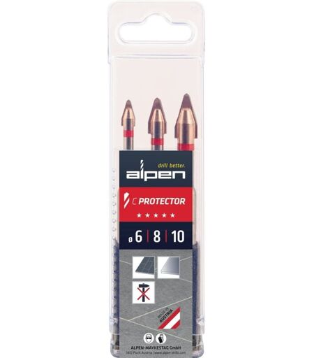 Alpen Jeu de perceuses pour carreaux C PROTECTOR 3 pièces, diamètre 6/8/10 mm