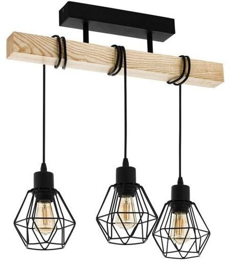 Eglo - Lampe de plafond 55x36x20 cm en métal noir avec support en bois 220-240 v IP20 Townshend 5