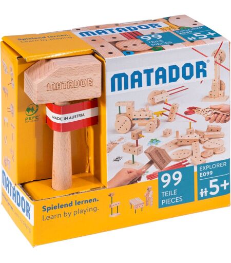 Matador Explorer E099 (99 pièces). Le premier ensemble de construction de la gamme Matador Explorer. Avec ses 99 pièces et 35 idées de modèles de construction, ce coffret offre une introduction parfaite aux jeux de construction Matador. Le moulin à vent, le tracteur, l?oiseau et de nombreux autres modèles favorisent le développement des capacités créatives et motrices des enfants. Ce set de construction pour enfant à parti ...