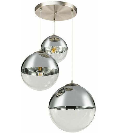 Suspension boules verre transparent nickel chrome mat lampe d'éclairage de salon Globo 15851-3