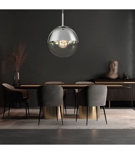 Globo Suspension boule de verre boule de verre chrome lampe de salle à manger suspension verre, métal, 1x douille E27, DxH 25x120 cm