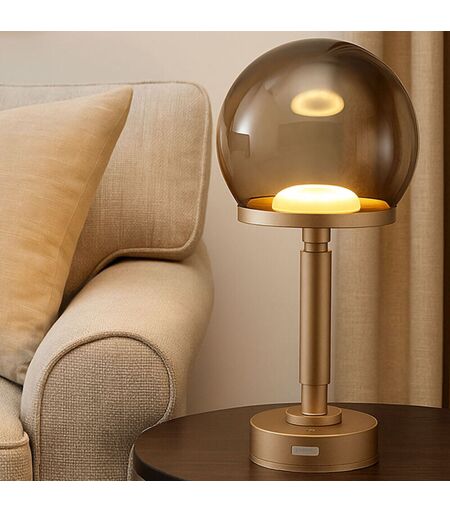 GLOBO LIGHTING Lampe de table led à intensité variable Lampe à accu Touchdimmer Lampe de table Lampe de chevet, plastique champagne, fumé, usb, 1W 18lm blanc chaud,