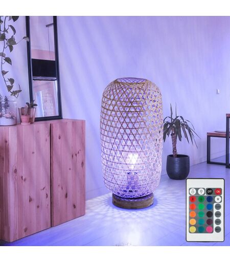 Globo Lampe de table en maille de bambou lampe de table lampe de côté en bambou salon bohème, naturel, télécommande dimmable, 1x led rvb 8,5W 806Lm blanc