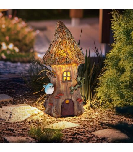 Globo Maison de fée pour le jardin, décoration solaire pour jardin extérieur, lampes solaires pour décoration extérieure, maison en tronc d'arbre, 1x led