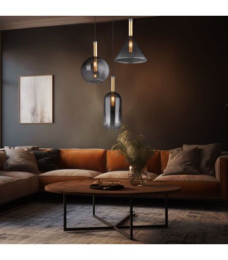 Globo Suspension lampe suspendue plafonnier verre couleur fumée lampe de salle à manger 3 lampes