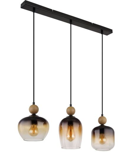 Globo Suspension, lampe suspendue, plafonnier, luminaire de salle à manger, verre ambre, 3 flammes