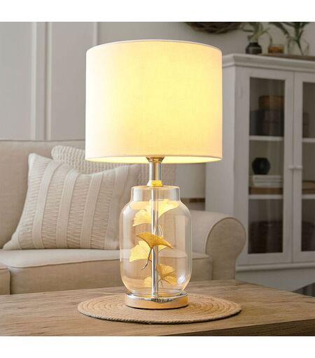 GLOBO LIGHTING Lampe de table Lampe d'appoint Feuilles Lampe de salle à manger Abat-jour textile blanc, verre plastique métal textile, 1x douille E27, DxH 25x38 cm
