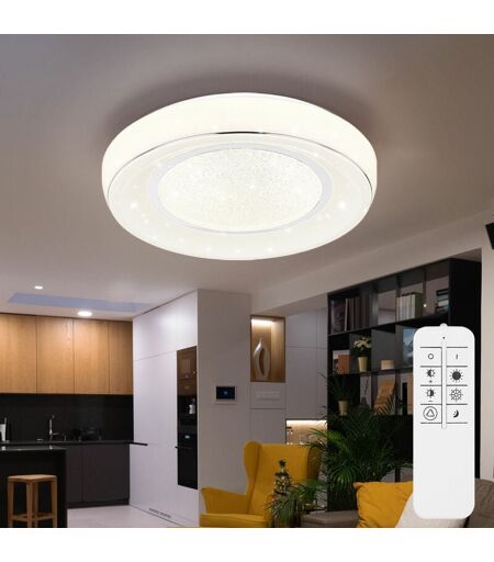 Globo - Plafonnier dimmable avec télécommande Plafonnier led salon cristal, effet ciel étoilé, température de couleur réglable avec veilleuse, 1x 24W