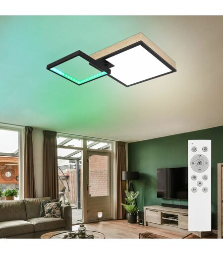 Globo - Plafonnier plafonnier design lampe en bois lampe de salon, effet arc-en-ciel dimmable télécommande mobile cct, led 21W 1000Lm blanc