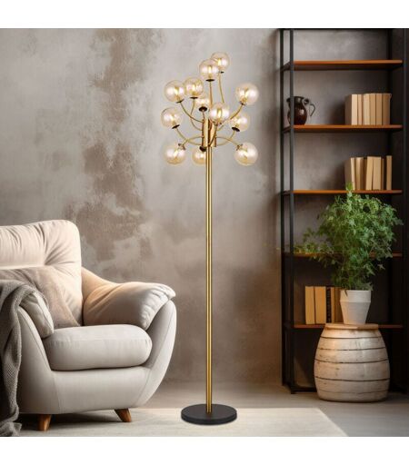 GLOBO LIGHTING Lampadaire lampe de chambre lampadaire led boule de verre laiton 12 ampoules h 200cm