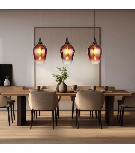 Globo Lampe à suspendre Lampe de table à manger Suspension à 3 flammes Lampe de salon Verre rouge, 3x E27, LxH 83 x 120 cm