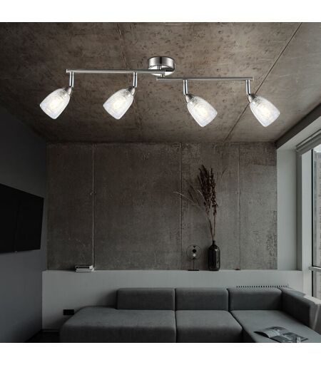 Globo Plafonnier, lampe de salon, barre de spots, plafonnier chromé, salle à manger, spots en verre mobiles au design Crackle, 4x LED 3W 250lm 3000K, LxH