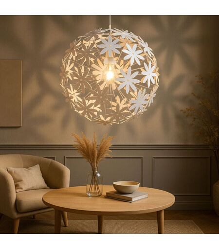Globo Lampe à suspension suspension lampe de table à manger salon à brancher en forme de fleur, plastique blanc, 1x E27, DxH 60x150 cm