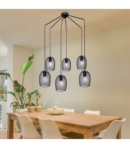 Description La lampe à suspension en métal noir provient de la série Dops. Avec les lampshades en treillis métallique attachés à six bras suspendus , cette lumière d'intérieur assure une sensation particulière de bien-être. Cette lampe est idéale pour le salon, la salle à manger et la chambre à coucher. D'autres modèles de cette série complètent votre espace de vie. Cette lampe traditionnelle fait saillie jusqu'à 150 cm dans la pièce et, gr&;ce aux douilles E27, offre la possibilité de l'intensité lumineuse ou la couleur elle-même à déterminer. En raison de leur économie d'énergie et de leur longévité, nous recommandons les ampoules LED. Les ampoules ne sont pas incluses dans la livraison. Détails de la lampe • type de lampe : lampe suspendue • matériau : métal • couleur : noir • abat-jour : maille métallique • diamètre x hauteur en cm : 75 x 150 • douilles : 6x E27 • ampoules incluses : non • ampoules de puissance : max 6x 40 watts • Alimentation : 230V, 50Hz ...