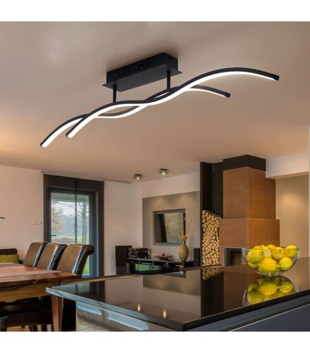 Globo - Plafonnier lampe design salon plafonnier led chambre, graphite noir, 20W 1130lm blanc chaud, LxH 88 x 15,5 cm